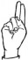 На ћирилици написано ЕВГЕНИЈЕ НЕДЕЉКОВИЋ састоји се из 18 слова [?]. Исписано ћириличном једноручном азбуком за глувонеме: